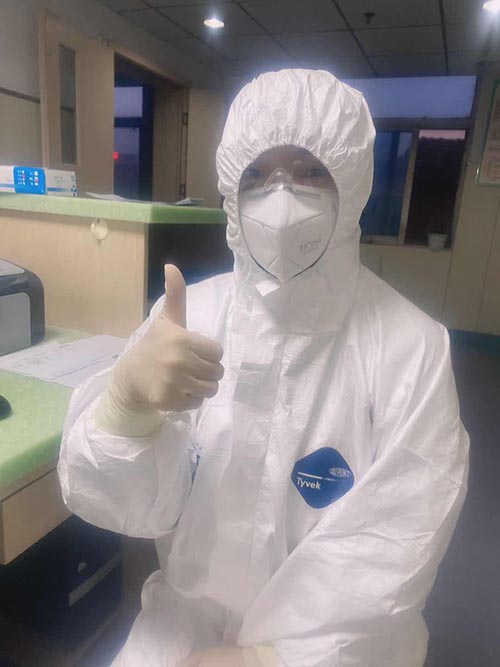 1月28日,負壓病房因人手不夠,在全院范圍緊急招募志愿者。負壓病房,需要“全副武裝”,每天和疑似病人近距離接觸,感染風(fēng)險極大。但受老公經(jīng)常參加搶險救援戰(zhàn)斗的影響,她多次向領(lǐng)導(dǎo)提出申請,并遞交了入黨志愿書,終于獲批“逆行”進入最危險的負壓病房。接下來的20多天,她每天都要陪著10幾個病人,認真細致的檢查防護、登記、測體溫等等,但確診檢測是個比較漫長的過程,有的病人難免產(chǎn)生焦慮、急躁的情緒,她總是像對家人一樣做好撫慰,幫助他們共克時艱。20多天來,她以院為家,克服了各種工作和生活困難,比如在多重防護服下行動不便、呼吸不暢、口干舌燥,累了就倚著墻蹲會,困了就靠著椅背瞇會??傊瓦@樣神秘的消失在家人的視線中,有時連報個平安的電話都沒空打。