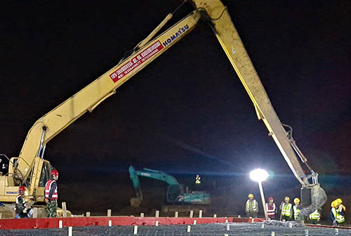 針對PPP項目的特點難點,項目部持續(xù)加強與駐地政府、聯(lián)合體成員單位、協(xié)作單位及供應(yīng)商等單位的溝通聯(lián)系,尤其是針對應(yīng)急項目邊設(shè)計邊施工、出圖計劃滯后、設(shè)計圖與現(xiàn)場情況不符制約施工的實際,著力與政府、設(shè)計、監(jiān)理等參建單位構(gòu)建聯(lián)絡(luò)機制,維持良好關(guān)系,相互協(xié)作解決問題,最大限度減少客觀條件因素的影響,成功協(xié)調(diào)解決了節(jié)制閘項目放水和料場等難題,保證了水位從36m降到33m,提前1個月進行圍堰填筑,10月1日實現(xiàn)圍堰全部合龍,為節(jié)制閘基坑施工提供了條件。