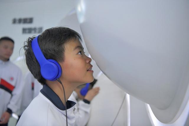 在南方電網(wǎng)貴州安順供電局節(jié)能展示廳,同學(xué)們通過互動(dòng)游戲了解如何節(jié)約能源等知識(shí)。