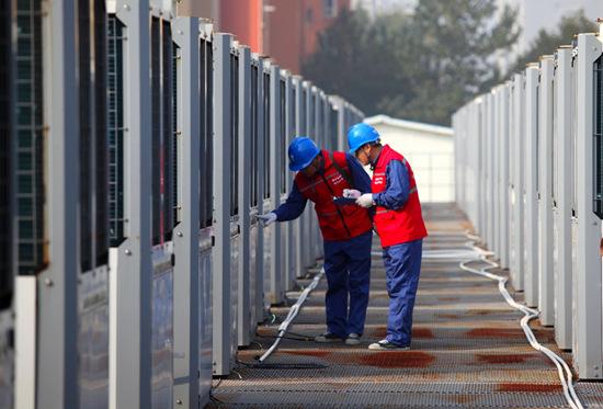 國(guó)網(wǎng)趙縣供電公司工作人員對(duì)李春大道空氣能供熱站主設(shè)備進(jìn)行巡視檢查。侯西果攝