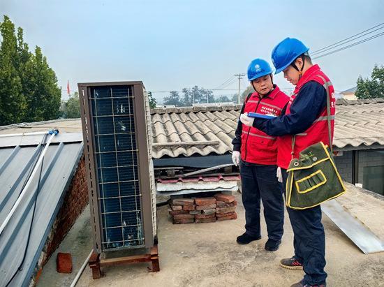 國(guó)網(wǎng)贊皇縣供電公司工作人員為許亭村“電采暖”用戶檢查用電設(shè)備。王一蘭攝