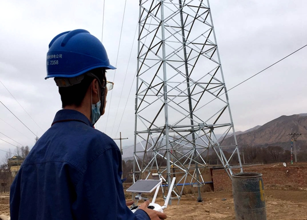 中國電力網訊 4月2日,國網青海黃化供電公司線路驗收人員頂著瑟瑟寒風,操作無人機對35千伏郭屯線18-24號線路進行遷改驗收。