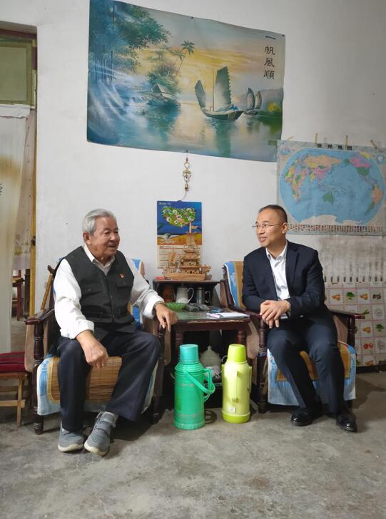 本網(wǎng)記者(右)與韓澤民老人親切交流