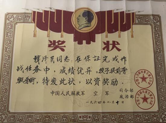 1964年7月,空軍政治部、司令部授予韓澤民提前晉級(jí)晉銜