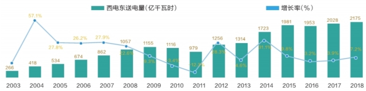 公司成立以來,西電東送電量從266億千瓦時增長至2175億千瓦時,增長8.18倍,年均增長15%。
