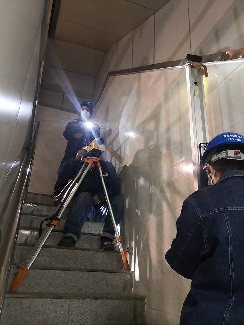 水工分場(chǎng)觀測(cè)班接到新的工作任務(wù),配合機(jī)械分場(chǎng)完成1號(hào)機(jī)組中性點(diǎn)高程測(cè)量工作。當(dāng)時(shí)正值觀測(cè)班日常觀測(cè)任務(wù)開(kāi)始之際,時(shí)間、人員都很緊張,李亞洲作為本班組重點(diǎn)培養(yǎng)青年,主動(dòng)承擔(dān)起司儀工作,將1號(hào)機(jī)組推力層標(biāo)點(diǎn)高程通過(guò)廠房上游側(cè)樓梯引至中性點(diǎn)出口處。由于樓梯較窄,階梯高度較大,3米水準(zhǔn)尺無(wú)法使用,只能通過(guò)趴、跪、坐等姿勢(shì)看儀器,身形偏瘦的他,多次“搬站”將高程引下,沾滿灰塵的衣服也擋不住他陽(yáng)光的笑臉,他的“委曲求全”確保了此次測(cè)量數(shù)據(jù)的精確性。