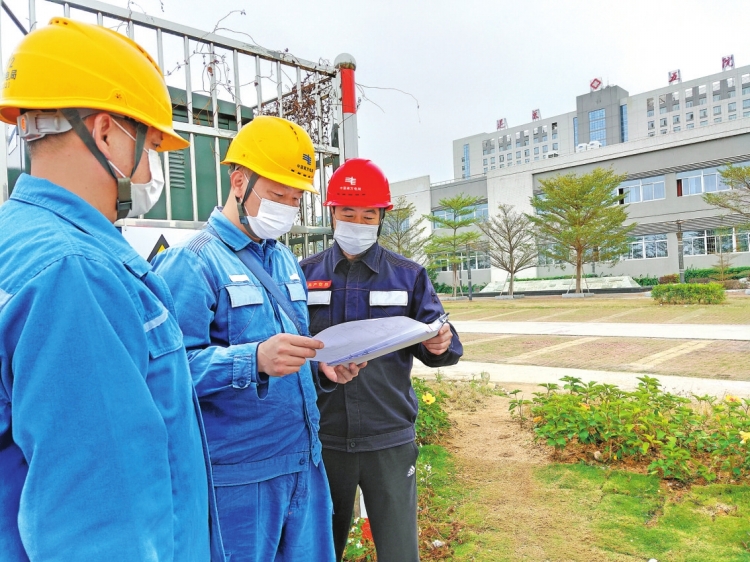 2月13日,廣東電網公司珠海供電局工作人員對重要用戶的用電設備進行防汛隱患排查。 劉俞君 攝
