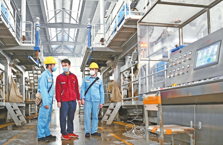 2月12日,在廣西南寧橫縣六景工業(yè)園內,橫縣漓源糧油飼料有限公司等16家企業(yè)設備轟鳴,工人們戴著口罩,有序生產。當天,廣西電網公司南寧橫縣供電局供電人員走進園區(qū)開展用電診斷,為企業(yè)安心生產做好供電服務。