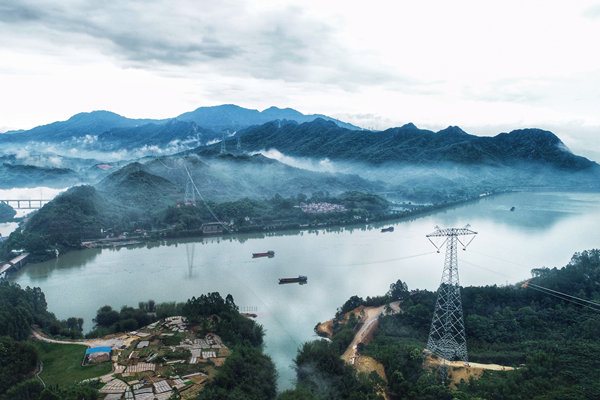 南方電網(wǎng)已形成“八交十一直”西電東送大通道,送電能力達到5800萬千瓦,五年累計送電量達到1.07萬億度。圖為昆柳龍直流工程廣東段線路跨越清遠北江。
