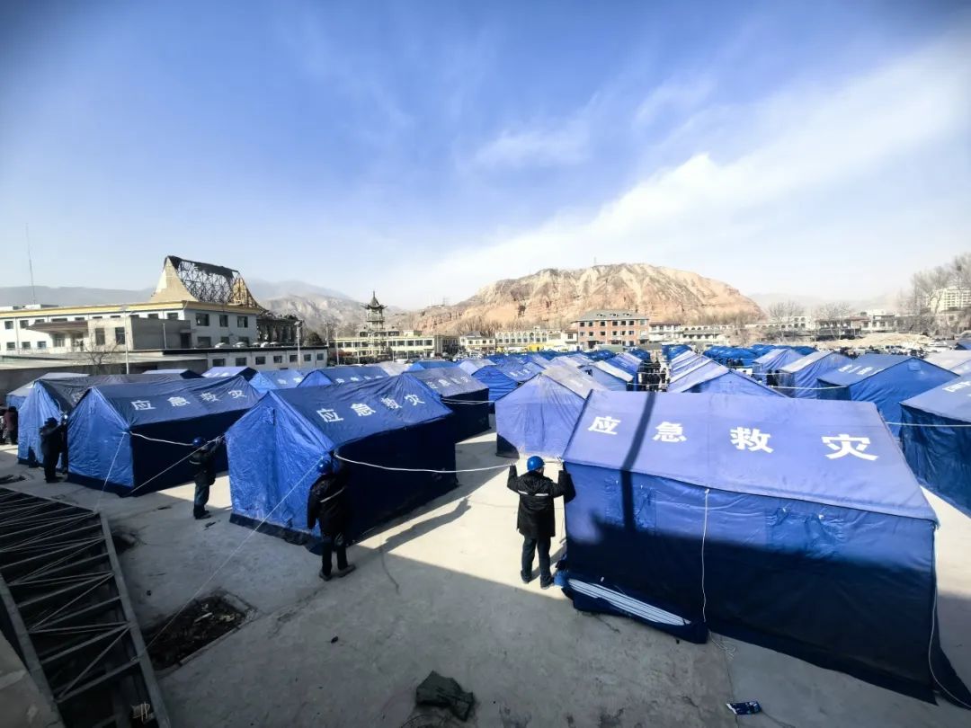 甘肅臨夏積石山縣發(fā)生地震后,公司員工為臨時安置點(diǎn)接線