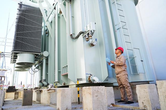國網(wǎng)天津建設公司員工在蘆臺500千伏變電站擴建工程現(xiàn)場進行主變表計消缺復驗工作。