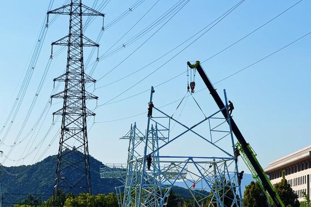 國網(wǎng)浙江杭州供電公司員工在500千伏嚴州變電站220千伏送出工程架設線路。