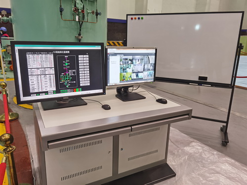 原來,桌子上擺放著兩臺顯示器,旁邊還立了一面大白板。左邊一臺顯示器接入了網(wǎng)頁版南瑞NC3.0-Web瀏覽系統(tǒng),登錄后即可直觀查看1號機組試驗過程中的各部參數(shù),緩解了以前做試驗時人員全部“扎堆”在監(jiān)控系統(tǒng)盤柜旁的擁擠狀況,并且使用鼠標操作輕松方便,切換畫面快速準確,參數(shù)瀏覽盡收眼底,解決了在下位機觸摸屏用手指翻頁查看的不便之處。右邊一臺顯示器接入了網(wǎng)頁版綜合安防管理平臺,此平臺是全廠主輔設備的“千里眼”,即遙視系統(tǒng)。有了它,1號機做試驗時就可以通過攝像頭清楚查看各部件的實時運行情況,尤其是水車室、人孔門等重點部位,避免了人員跑上跑下造成的時間和精力上的浪費。最后說說這塊大白板,在現(xiàn)場,不僅可以張貼試驗方案,列出重要時間節(jié)點和重要試驗數(shù)據(jù),使整個試驗處于顯而易見的可控狀態(tài),還可以隨時隨地開展“頭腦風暴”,分析試驗過程中遇到的問題,集思廣益提出最優(yōu)解決方案。原來,這是一臺“開機試驗調(diào)度臺”,是該廠電氣分場自動班黨員積極開展智能化創(chuàng)新,充分發(fā)揮聰明才智的成果,如今已正式投入使用,真正成為了1號機組動態(tài)試驗的有力“幫手”。