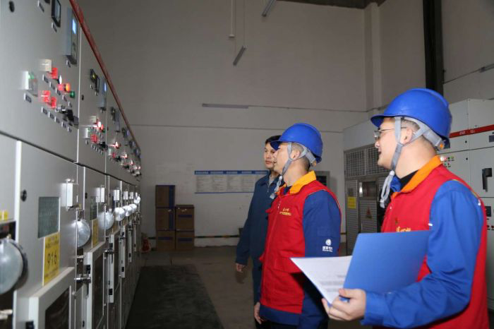 國網南充供電公司員工在南充市高新產業(yè)園了解企業(yè)配電室設備運行情況