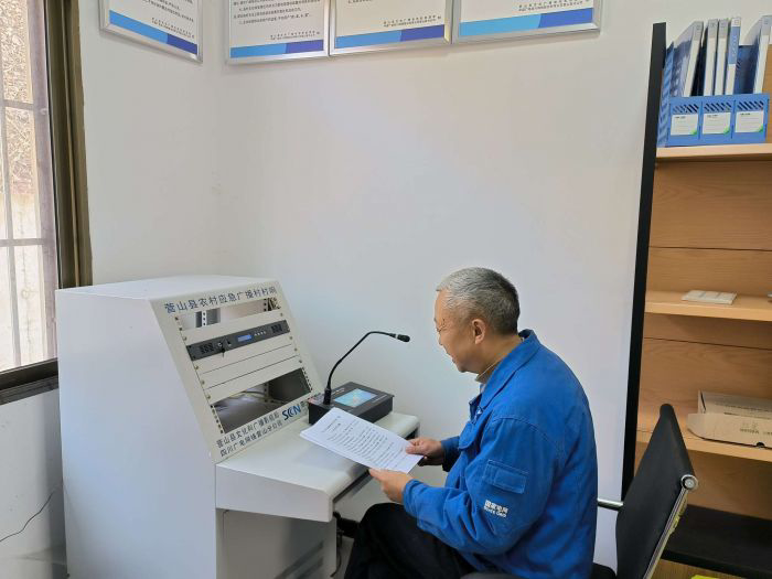 國網南充供電公司員工通過村社廣播宣講冬季安全用電注意事項