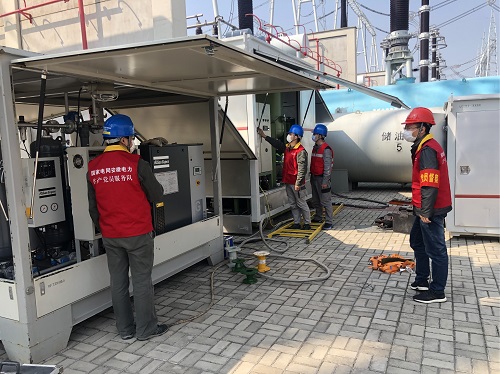 母線PT主要供輔助并網、繼電保護和監(jiān)測母線運行狀態(tài)使用,特高壓淮南站在初期建設時設計安裝單相PT,今年開展了1000千伏母線B、C相加裝PT工作。公司調配精干力量組成專項工作小組,提前勘察作業(yè)現(xiàn)場,工地監(jiān)督人在現(xiàn)場再三強調:“作業(yè)現(xiàn)場有真空機、空氣干燥機、200噸吊車、25噸吊車和8噸吊車等多臺大型機具,相鄰間隔帶電運行,一定要提前規(guī)劃好車輛作業(yè)路線和機具、物料擺放位置。”由于工期緊張,每天現(xiàn)場作業(yè)時間長達12個小時,公司在全力做好疫情防控工作的同時,采用“工地監(jiān)督+到崗到位+全時段視頻稽查+不定期檢查”四合一的方式扎實開展現(xiàn)場安全管控工作,此次工程結束將有效降低特高壓淮南站GIS在系統(tǒng)調試和運行中空充主母線時的放電故障率。