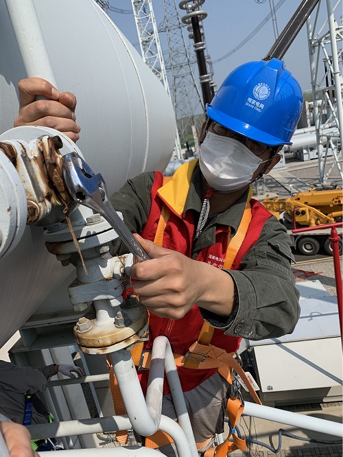 在對特高壓淮南站主變高壓端子接線柱及端部法蘭進行排查時,發(fā)現(xiàn)接線柱有偏移且端部法蘭不平整,作為變電站的“心臟”,必須確保主變的健康水平,4月3日至5月8日,國網安徽檢修公司圓滿完成特高壓淮南站內兩臺主變的“心臟手術”,此次開展1000千伏主變高壓套管大型檢修工作是省內首次,國網安徽檢修公司提前編制檢修方案和安全措施,組織各單位技術骨干協(xié)同作戰(zhàn),細摳每一個作業(yè)環(huán)節(jié),從引線拆除、主變排油、套管端子更換,到抽真空、真空注油、修后試驗,手術的每個環(huán)節(jié)都一絲不茍、有條不紊。“今天晚上需要進行關鍵的抽真空工作,我在現(xiàn)場通宵看守,不然我不放心。”每到關鍵環(huán)節(jié),工作負責人甚至需要通宵值守。歷經36個日夜的奮戰(zhàn),終于完成“心臟手術”,確保主變以最佳狀態(tài)重新投入到電網運行中。