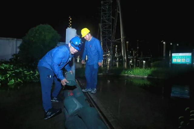 7月29日,國網(wǎng)北京順義供電公司員工對110千伏潮白河變電站布置防汛措施,確保變電站安全穩(wěn)定運行。(侯占泉攝)