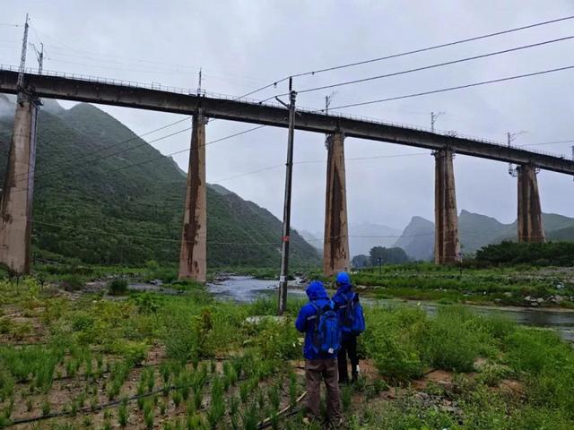 門頭溝公司雁翅供電所員工對位于河道附近的10千伏線路開展雨中特巡。(李江攝)