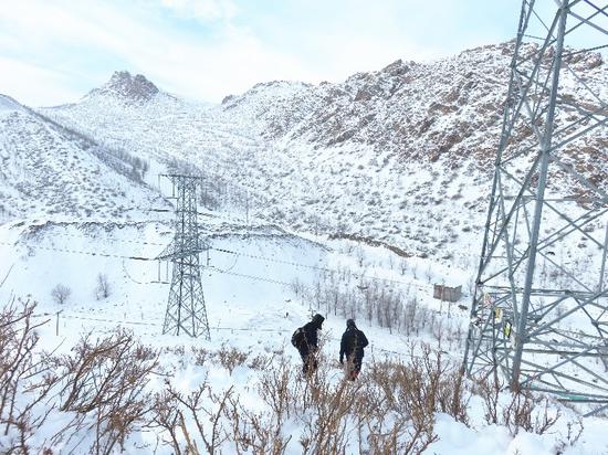 2月17日,國(guó)網(wǎng)烏魯木齊供電公司輸電運(yùn)檢人員巡視監(jiān)測(cè)線(xiàn)路覆冰情況。狄開(kāi)麗 攝