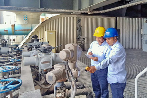 圖為該公司點檢人員正在進(jìn)行6號鍋爐閥門內(nèi)漏情況排查