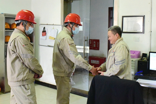 中國電力網(wǎng)訊 2021年1月1日上午,在新年第一天,大唐淮北發(fā)電廠江高潮帶領(lǐng)分管副廠長、生產(chǎn)職能部室人員等深入生產(chǎn)一線,檢查督導(dǎo)元旦期間安全生產(chǎn)各項(xiàng)工作,并看望慰問堅(jiān)守一線的干部職工,致以真摯問候與節(jié)日祝福。