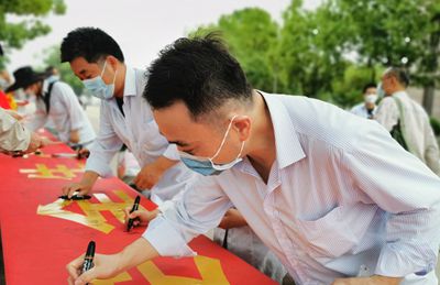 7點(diǎn)30分以后,陸續(xù)進(jìn)場(chǎng)上班的干部職工沐浴著初夏明媚的陽(yáng)光,感受著安全穩(wěn)定的和諧氛圍,在寫(xiě)有“安全生產(chǎn)月”簽名活動(dòng),在寫(xiě)有“遵守安全生產(chǎn)法 當(dāng)好第一責(zé)任人”紅色橫幅上,鄭重簽下自己的名字,快速瀏覽宣傳手冊(cè),以這種方式作出嚴(yán)肅承諾,嚴(yán)格落實(shí)安全生產(chǎn)規(guī)章制度,堅(jiān)決當(dāng)好自己崗位的“第一責(zé)任人”,切實(shí)守護(hù)個(gè)人安全,共同保障企業(yè)安全。