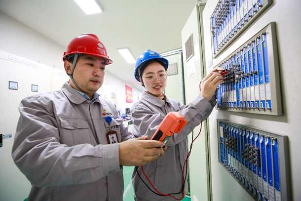 圖為熱控人員進(jìn)行汽輪機(jī)軸系振動儀表間隙電壓測量