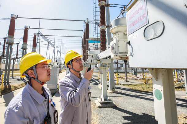 圖為運行人員檢查升壓站開關(guān)儲能壓力