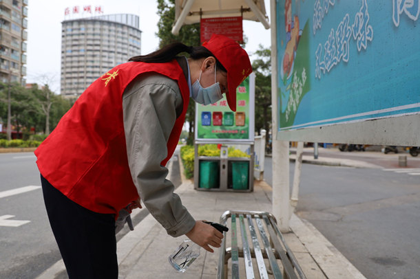 活動中,志愿者兩兩一組,組成三支小隊。三支隊伍分工有序,分別開展了協(xié)助環(huán)衛(wèi)女工打掃街道、清掃公共區(qū)域地面及設施、消毒公交車站站牌和候車位等工作?;顒映掷m(xù)1個小時,志愿者身體力行地參與到公共衛(wèi)生環(huán)境整治工作當中,切身體會到環(huán)衛(wèi)工人的崗位艱辛,并表示會進一步提升環(huán)保意識,積極向周邊家人同事傳導維護環(huán)境知識和理念,切實營造共創(chuàng)美好家園的氛圍。
