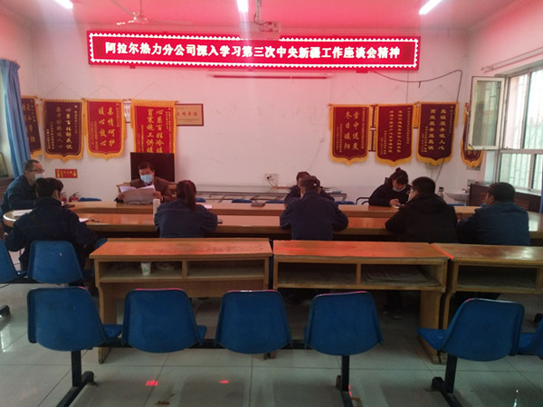中國(guó)電力網(wǎng)訊 11月24日,新疆兵團(tuán)一師電力阿拉熱力分公司黨員干部學(xué)習(xí)宣傳貫徹第三次中央新疆工作座談會(huì)精神,用全會(huì)精神武裝頭腦、指導(dǎo)實(shí)踐、推動(dòng)工作,不斷提升職工群眾的獲得感、幸福感和安全感。