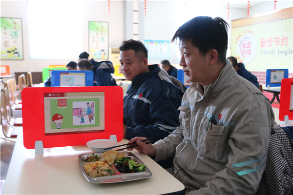 圖片展充分利用職工餐廳防疫隔板,將其變成黨風(fēng)廉政建設(shè)宣傳的新陣地,以此破解傳統(tǒng)灌輸式、說(shuō)教式宣教讓職工感覺(jué)學(xué)習(xí)枯燥、乏味的實(shí)際問(wèn)題。圖片展圍繞黨的紀(jì)律、廉潔從業(yè)、杜絕浪費(fèi)三方面內(nèi)容,選取了與職工生產(chǎn)生活息息相關(guān),黨員干部應(yīng)知應(yīng)會(huì)紀(jì)律等80個(gè)知識(shí)點(diǎn),以生動(dòng)有趣的漫畫加文字說(shuō)明的形式,編制成粘貼畫,粘貼在餐桌隔板上,讓職工在就餐中觀看學(xué)習(xí)黨規(guī)黨紀(jì)、廉潔自律、勤儉節(jié)約等知識(shí)要點(diǎn),在潛移默化中牢記廉潔從業(yè)紀(jì)律,促進(jìn)全員將黨的紀(jì)律、規(guī)矩入腦入心,不斷增強(qiáng)廉潔從業(yè)、勤儉節(jié)約的行動(dòng)自覺(jué)。