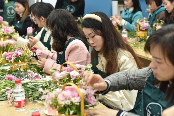 培訓(xùn)后,該公司開展了插花實(shí)踐活動,讓全體女職工活學(xué)活用,親手體驗(yàn)插花的樂趣。