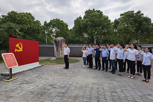“我志愿加入中國共產(chǎn)黨,擁護(hù)黨的綱領(lǐng),遵守黨的章程,履行黨員義務(wù)……”在簡樸肅穆的總前委舊址前,全體黨員面向鮮紅的黨旗,舉起右拳、莊嚴(yán)宣誓,重溫入黨誓詞,鏗鏘有力的誓詞堅(jiān)定表示著聽黨話、跟黨走、對黨忠誠的決心。