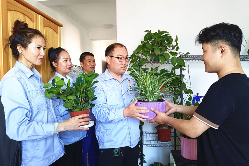 “小小的綠植,不僅能凈化空氣,還能緩解壓力,愉悅身心。”“我最喜歡花花草草,養(yǎng)了那么多的花草也會(huì)讓我有一種成就感......”。一盆盆充滿活力的綠植傳遞著公司對(duì)住宿員工的人文關(guān)懷,截至目前,20盆生機(jī)盎然的小綠植已經(jīng)全部“安家落戶”。