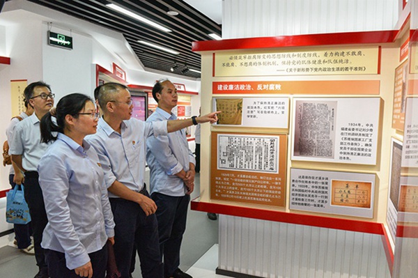 在龍巖市黨員政治生活館內(nèi),黨員干部、入黨積極分子們在機(jī)器人“講解員”的帶領(lǐng)下,依次參觀了“黨內(nèi)政治生活的百年歷程”、“黨內(nèi)政治生活的閩西蘇區(qū)探索”展區(qū),通過觀看文獻(xiàn)資料、歷史圖片、實物展覽、宣教視頻等了解了不同時期黨內(nèi)政治生活的探索和發(fā)展歷程,真切感受到老一輩無產(chǎn)階級革命家在艱苦的斗爭環(huán)境中不搞特權(quán)、帶頭講政治講黨性、發(fā)揚黨內(nèi)民主、接受黨和群眾監(jiān)督、持續(xù)保持清正廉潔的優(yōu)良品質(zhì)。