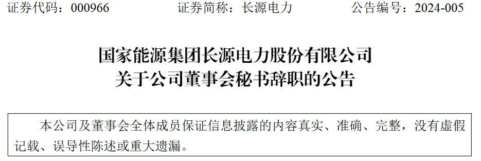 長(zhǎng)源電力于1月18日發(fā)布公告稱,公司董事會(huì)于 2024 年 1 月 17 日收到劉軍先生的書面辭職報(bào)告。