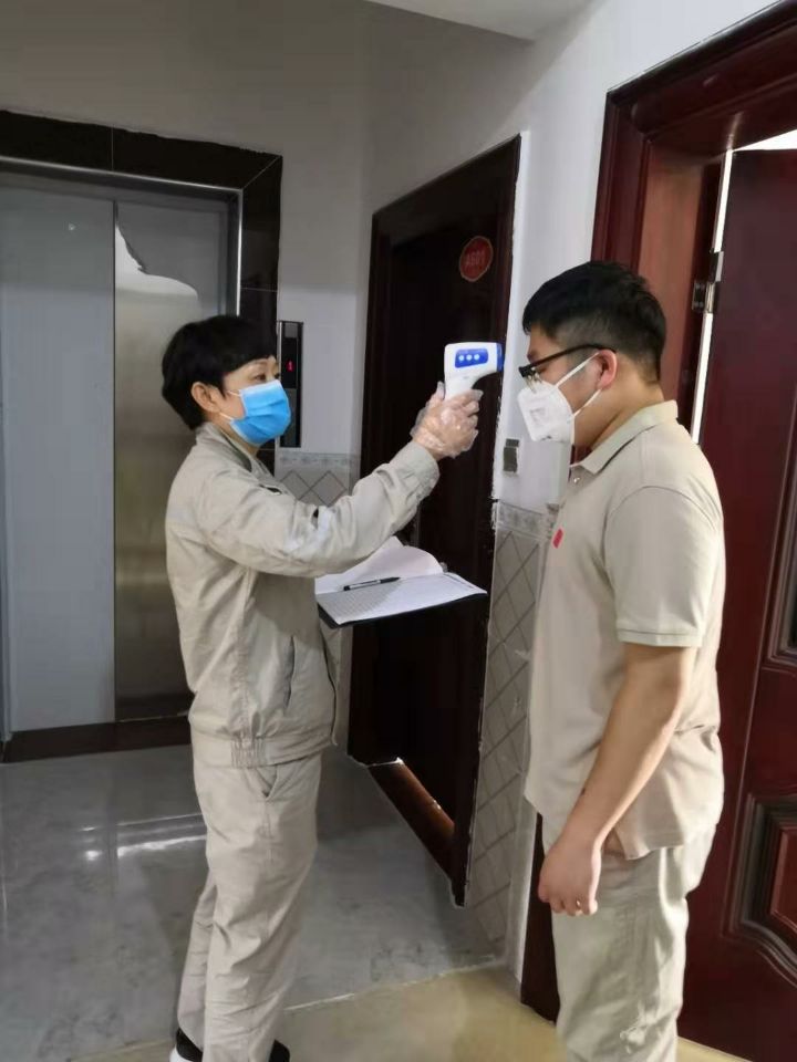 張燕每天對自我隔離職工進行測溫