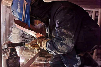 修復(fù)振打器磁軸,更換脫落的陰極線,對(duì)倒伏的陽(yáng)極板進(jìn)行清理、恢復(fù)、固定,唐匯軍就這樣一樣樣地、默默無(wú)聞地做著,偶爾工作間隙里,他會(huì)開兩句玩笑,緩和一下枯燥和疲憊。出了爐子,吃個(gè)工作餐,耽誤不到半個(gè)小時(shí),又立即扎進(jìn)了工作中,身邊的同事總是被他的工作態(tài)度激勵(lì)著。“不能偷懶?;?,必須檢查到位,修必修好。”爬出爐子時(shí)已經(jīng)腰酸背痛,唐師傅依舊微笑得那么純粹。這項(xiàng)檢修工作持續(xù)了半個(gè)月,才得以很好完成。