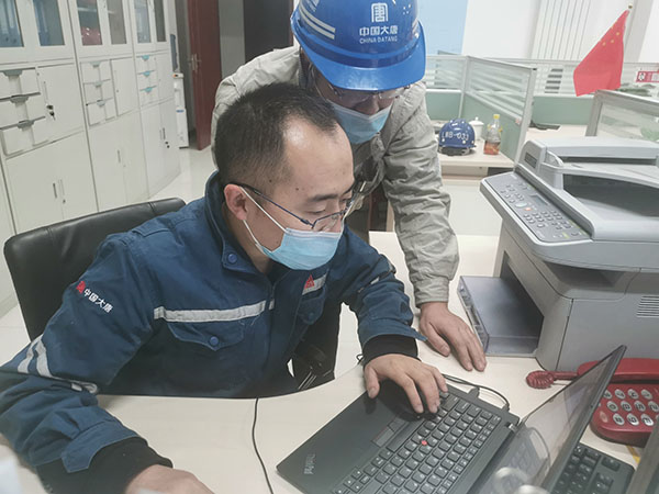 張博(左)編寫2號(hào)機(jī)組主軸定位銷拆除方案