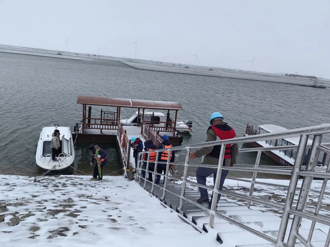 德州丁莊光伏項(xiàng)目現(xiàn)場(chǎng),冒雪搶修集電線路故障。其他光伏電站主動(dòng)對(duì)光伏支架、傳輸設(shè)備儀器開(kāi)展專項(xiàng)安全隱患排查。各風(fēng)電場(chǎng)運(yùn)行人員及時(shí)清理設(shè)備積雪,加強(qiáng)對(duì)箱變、匯集線路、機(jī)組葉片等重點(diǎn)區(qū)域的特巡,做好隱患排查,確保設(shè)備安全穩(wěn)定運(yùn)行。