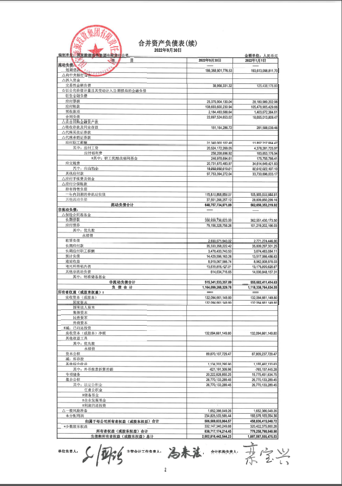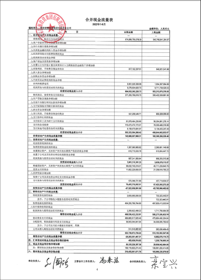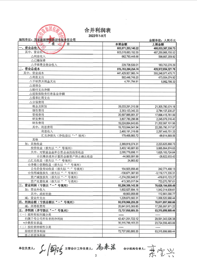 國家能源集團2022年三季財務報表