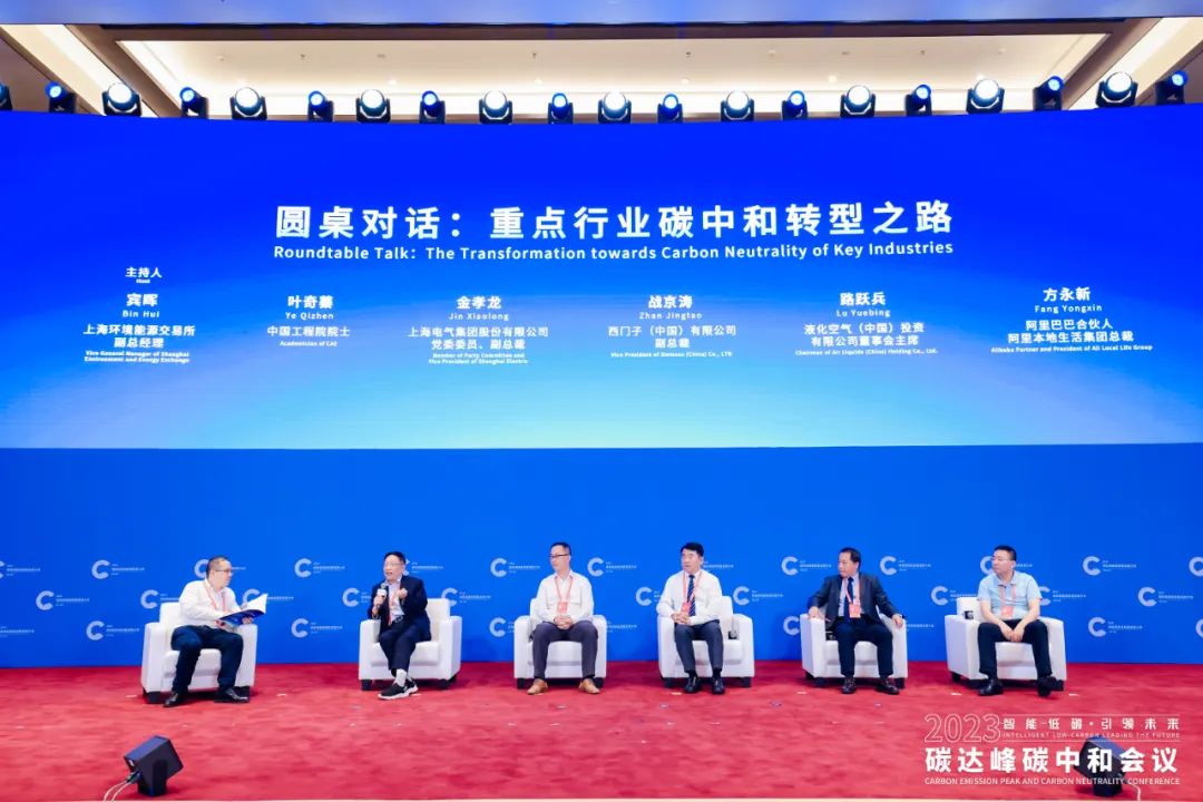 在煙臺(tái)碳達(dá)峰碳中和會(huì)議上,中國工程院院士葉奇蓁就“重點(diǎn)行業(yè)碳中和轉(zhuǎn)型之路”這一主題,與上海電氣集團(tuán)股份有限公司黨委委員、副總裁金孝龍,西門子(中國)有限公司副總裁戰(zhàn)京濤,液化空氣(中國)投資有限公司董事會(huì)主席路躍兵,阿里巴巴合伙人、阿里本地生活集團(tuán)總裁方永新展開圓桌對(duì)話。