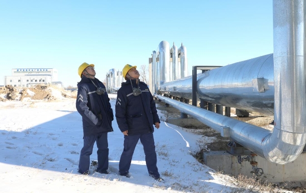 烏拉特發(fā)電廠熱網(wǎng)部運(yùn)維人員巡視檢查轄區(qū)供熱設(shè)備