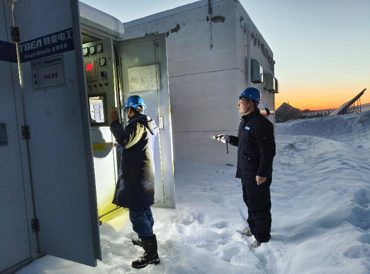 在西北部地區(qū),新疆伊犁地區(qū)日前遭遇連續(xù)降雪,華能伊犁光伏電站地處山區(qū),現(xiàn)場積雪最深處達50公分。場站立即啟動防寒防凍應急預案,重點對匯流箱、箱變、逆變器、光伏板凝凍情況等進行仔細檢查,增加巡檢次數(shù)和動態(tài)跟蹤;及時清除組件積雪,加強應急值班管理,持續(xù)做好運行監(jiān)控分析和重點設備專項檢查工作,確保電力生產(chǎn)設備始終處于最佳運行狀態(tài),保障關(guān)鍵時刻設備安全穩(wěn)定供電。