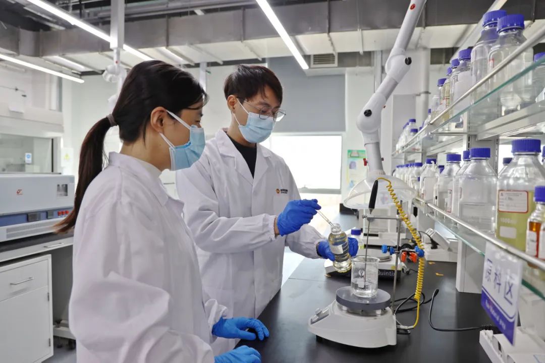 寧夏煤業(yè)煤化工研究院研發(fā)員進(jìn)行高端潤(rùn)滑油調(diào)和實(shí)驗(yàn)。