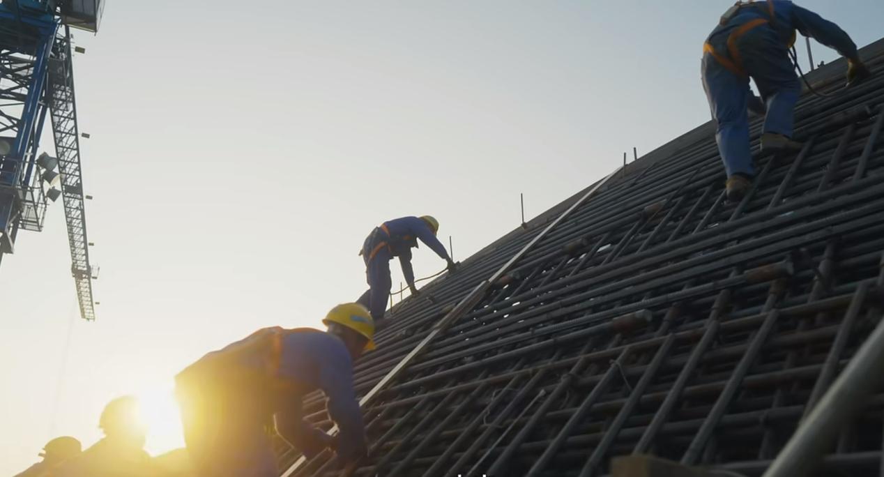 龍年春節(jié)期間,太平嶺核電站1號機組完成外穹頂驗收工作,進入建設(shè)關(guān)鍵期。8000多名建設(shè)者堅守現(xiàn)場,以熱火朝天的干勁投入工作。在面積約5個籃球場大小的穹頂上,數(shù)十名施工人員像“蜘蛛俠”一樣,趴在機組的最高點“敲敲打打”,對已經(jīng)完成安裝的穹頂鋼筋進行檢查驗收,干著以毫米為單位的精細活。