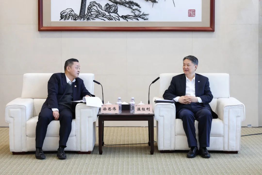 溫樞剛對徐思偉、莫德旺一行的到來表示歡迎,對中國國新一直以來對中國華能的支持表示感謝,并介紹了華能能源保供、經(jīng)營發(fā)展、產(chǎn)業(yè)布局、綠色轉(zhuǎn)型、科技創(chuàng)新等情況。