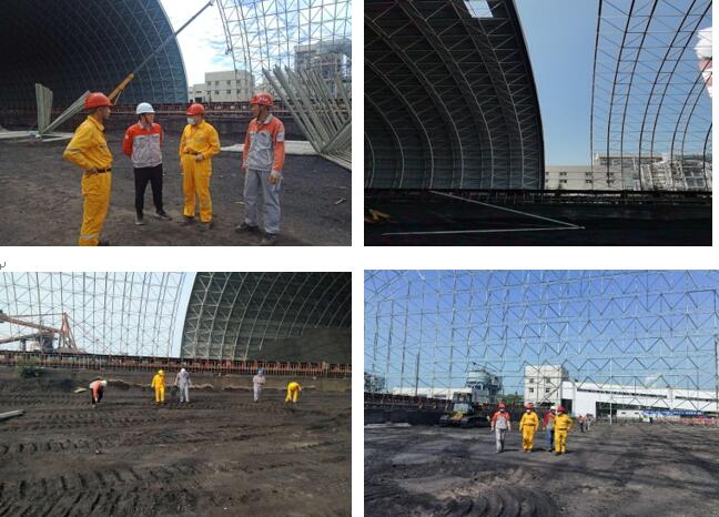 網(wǎng)架主體結(jié)構(gòu)安裝完工后,技術(shù)支持部協(xié)調(diào)施工單位及時平整、清理場地,發(fā)電部人員認(rèn)真履行檢查驗收程序,雙方順利完成交接手續(xù),使干煤棚西側(cè)區(qū)域具備存煤條件。