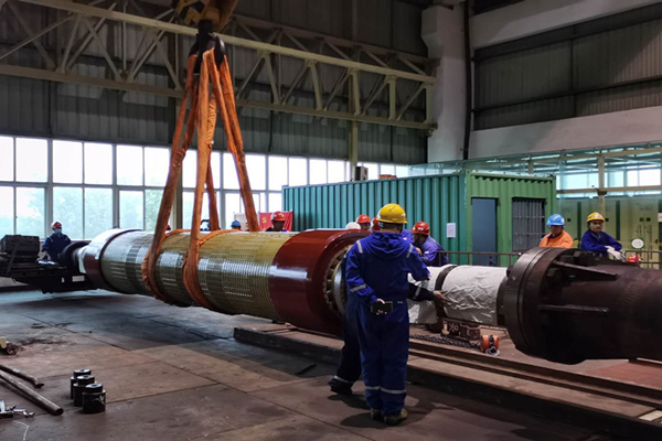 下午14時(shí)10分,隨著起重指揮人員的一聲哨響,發(fā)電機(jī)抽轉(zhuǎn)子工作正式開(kāi)始,抽出期間,各專業(yè)人員分工有序,密切配合,時(shí)刻注意轉(zhuǎn)子與定子的間隙,及時(shí)調(diào)整轉(zhuǎn)子的移出量和中心位置,每一步都做到精益求精。整個(gè)抽出過(guò)程中,公司副總經(jīng)理張旭耀攜各部門(mén)負(fù)責(zé)人、專工現(xiàn)場(chǎng)監(jiān)督、指導(dǎo),隨時(shí)協(xié)調(diào)工作中可能出現(xiàn)的問(wèn)題,為抽轉(zhuǎn)子作業(yè)的順利進(jìn)行,提供了可靠保障。